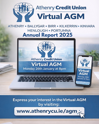 Whilst every care has been made in the production of this information, it is for illustrative purposes only and to give you an overview of the potential cost of borrowing at Athenry Credit Union. It does not constitute a loan offer. Loans are subject to approval. Terms and conditions apply. If you do not meet the repayments on your loan, your account will go into arrears. This may affect your credit rating which may limit your ability to access credit in the future. For more information contact us on 091 844 306.
