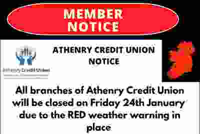 During this time, our online service will be available 24/7 through our banking app & website at www.athenrycu.ie